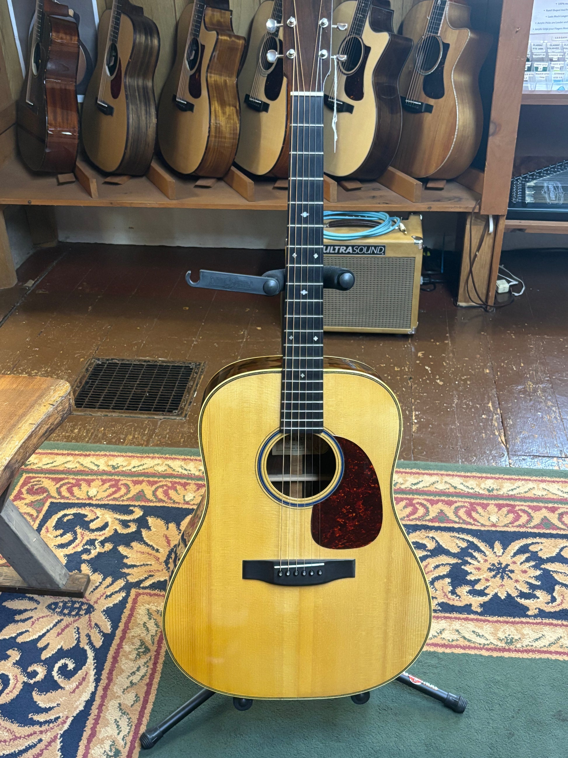 This guitar was purchased new here at our shop around 1972 and had been with the same owner the entire time. It has been meticulously cared for and all it needed when it came back to us recently was a string change and to lightly dress the fret edges. Action is where it should be, ready to play.